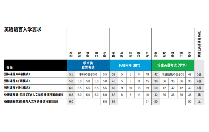 英语语言入学要求